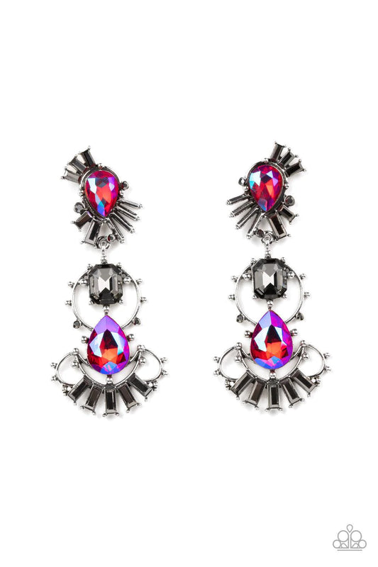 Magical Melodrama Multi Peach and Iridescent Rhinestone Earrings